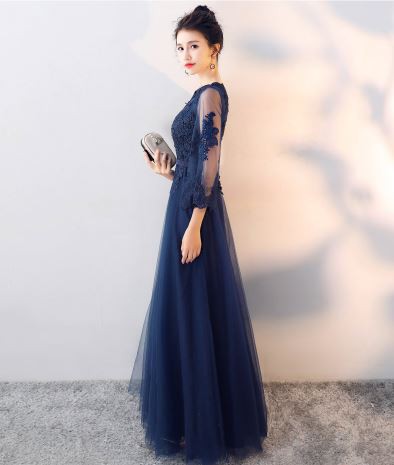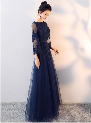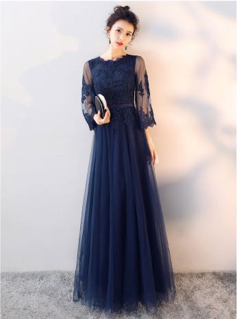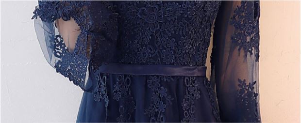 透け感のあるレース使いが華やかなロングドレスです。