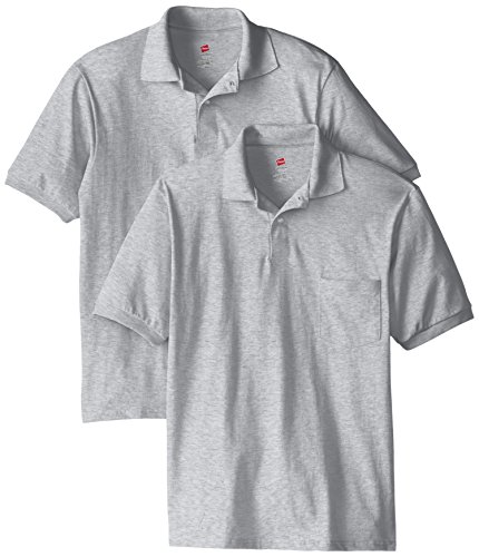 -. Binding : Apparel -. Brand : Hanes -. Department : mens -. Feature : Soft cotton-blend jersey resists wrinkles / Rib-knit cuffs and welt collar keep their shape, wash after wash / Clean-finished placket and pearlized buttons for a sharp look / Five-point left chest pocket / Made with up to 5 percentage polyester created from recycled plastic bottles -. Label : Hanes Men's Athletic Child Code -. Manufacturer : Hanes Men's Athletic Child Code -. Model : O0504 -. PackageQuantity : 1 -. ProductGroup : Apparel -. ProductTypeName : SHIRT -. Publisher : Hanes Men's Athletic Child Code -. Studio : Hanes Men's Athletic Child Code -. Title : Hanes Men's Short Sleeve Jersey Pocket Polo (Pack of 2)
