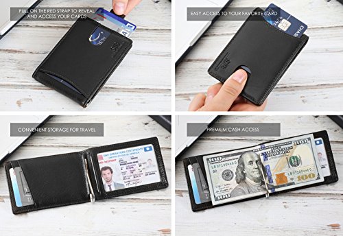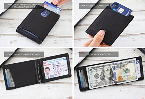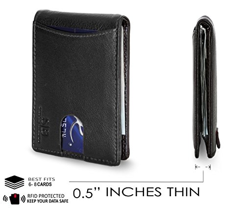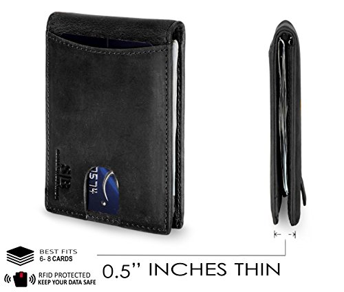 Travel Wallet RFID Blocking Bifold Slim Genuine Leather Thin Minimalist Front Pocket Wallets for Men Money Clip - Made From Full Grain Leather (Jet Black 1.0)
