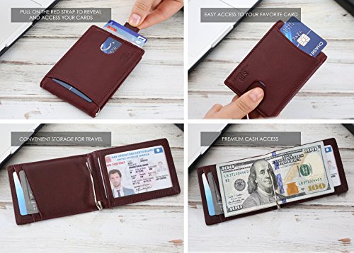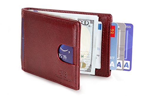 Travel Wallet RFID Blocking Bifold Slim Genuine Leather Thin Minimalist Front Pocket Wallets for Men Money Clip - Made From Full Grain Leather (Mahogany 1.0)