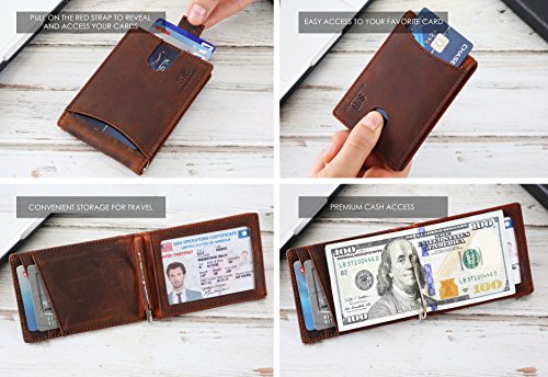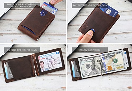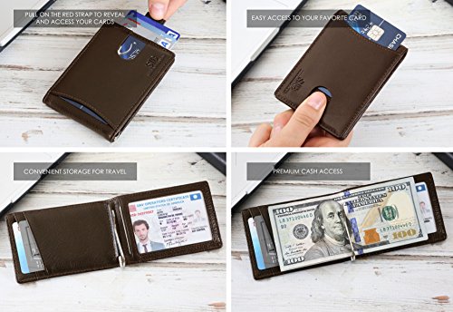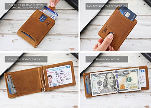 Travel Wallet RFID Blocking Bifold Slim Genuine Leather Thin Minimalist Front Pocket Wallets for Men Money Clip - Made From Full Grain Leather (Texas Brown 1.0)