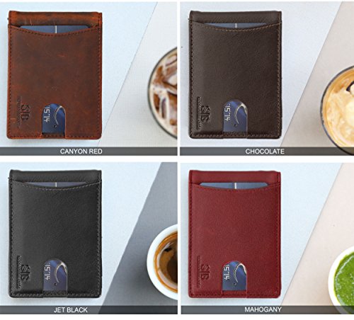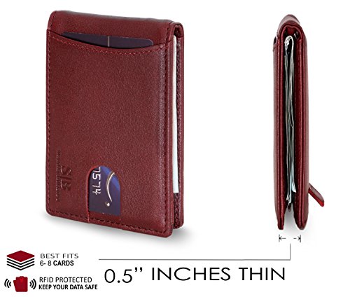 Travel Wallet RFID Blocking Bifold Slim Genuine Leather Thin Minimalist Front Pocket Wallets for Men Money Clip - Made From Full Grain Leather (Canyon Red 1.0)