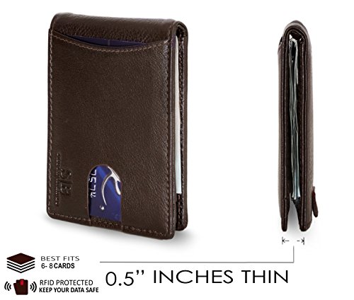 Travel Wallet RFID Blocking Bifold Slim Genuine Leather Thin Minimalist Front Pocket Wallets for Men Money Clip - Made From Full Grain Leather (Chocolate 1.0)