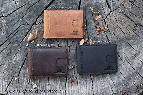 Travel Wallet RFID Blocking Bifold Slim Genuine Leather Thin Minimalist Front Pocket Wallets for Men Money Clip - Made From Full Grain Leather (California Desert 1.0)