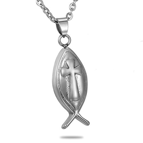 -. Title : HooAMI Christian Fish Cross Cremation Urn Jewelry Ashes Necklace