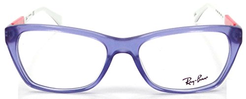New Authentic Ray-ban Rx Eyeglasses Frames Rb 5298 5551 53x17 Crystal Blue Violet Coral White MADE IN CHINA (Ray Ban's glasses now come from different factories including China, these glasses are 100% authentic) Style: RAY-BAN RX Frames Lens size: 53mm Bridge Size: 17mm Temple Size: 135mm Color: Crystal Blue Frame / Violet outside with Coral and White inside Temple Arms The lenses on the frames are dummy clear lenses, to get a prescription you will need to take the frames to an optical shop. Comes with Ray-Ban Case