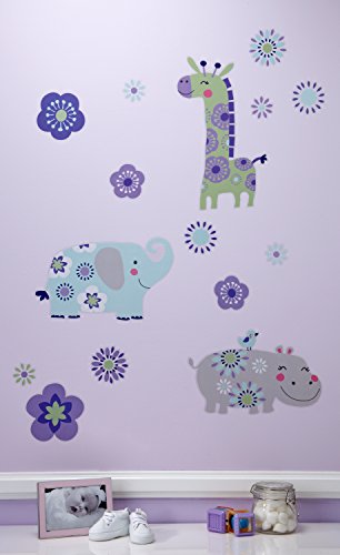 Carter's Zoo Jungle/Safari Floral Wall Decals, Lavender/Aqua/Green