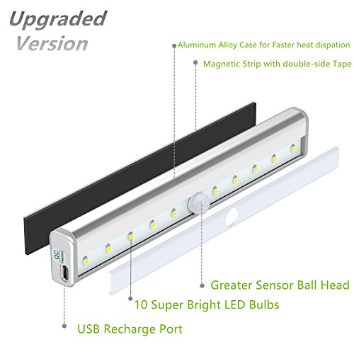 - ✔ USB RECHARGLE - This motion sensor light with light sensation makes it only light in dark, creating a bright light for your dark place, up to 5000 hours life span. Powered by built-in rechargeable battery, USB rechargeable offers you an economic and environmentally friendly life.