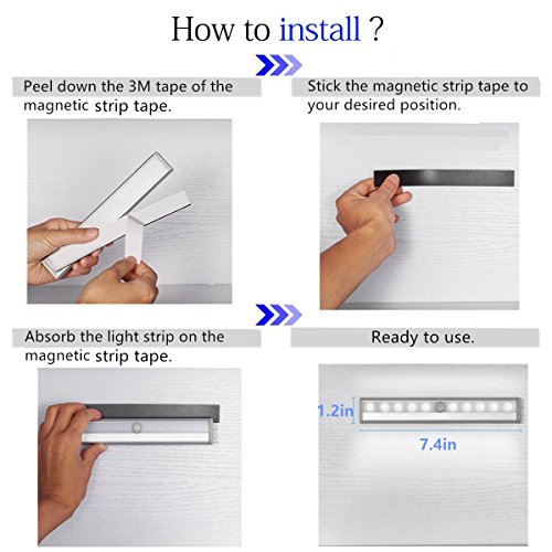 - ✔ EASY INSTALL & TAKE DOWN - With 3M tape stick-on magnetic strip, this led night light can be easily adhesive to any place and can be conveniently taken down to recharge at any time.