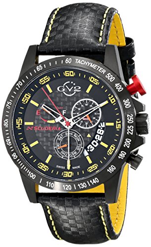 -. Binding : Watch -. Brand : GV2 by Gevril -. Department : mens -. EAN : 0840840106865 -. Feature : Isa 8173 Swiss quartz movement; power reserve, alarm, GMT, small second features / Black ion plated stainless steel case; carbon fiber design dial / Swiss-quartz Movement / Case Diameter: 50mm / Water Resistant To 330 Feet -. Label : First SBF Holding Inc. -. Manufacturer : First SBF Holding Inc. -. Model : 9901 -. MPN : 9901 -. PackageQuantity : 1 -. PartNumber : 9901 -. ProductGroup : Watch -. ProductTypeName : WATCH -. Publisher : First SBF Holding Inc. -. Studio : First SBF Holding Inc. -. Title : GV2 by Gevril Men's 9901 Scuderia Analog Display Swiss Quartz Black Watch -. UPC : 840840106865