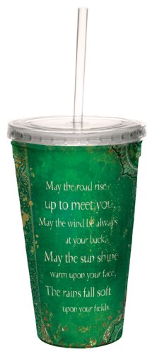 Tree-Free Greetings 80511 Irish May The Road Art by Duirwaigh Gallery Artful Traveler Double-Walled Acrylic Cool Cup with Reusable Straw, 16-Ounce