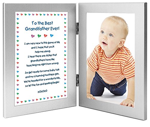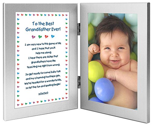 -. Binding : Kitchen -. Brand : Poetry Gifts -. Color : Silver -. Feature : The baby's grandfather will love getting this sweet gift from his grandson or granddaughter for his birthday - p is written in a kid's typeface / Two attached 4x6 inch frames - left frame contains p - right frame has area for a 4x6 inch photo / 4x6 inch photo can be easily inserted at any time after delivery / Brushed silver metal frame with black velour backing - tabletop display / P appears in Product Description -. IsAdultProduct : 0 -. Label : Poetry Gifts -. Manufacturer : Poetry Gifts -. MPN : poetrygifts-71-002 -. PackageQuantity : 1 -. PartNumber : poetrygifts-71-002 -. ProductGroup : Baby Product -. ProductTypeName : BABY_PRODUCT -. Publisher : Poetry Gifts -. Studio : Poetry Gifts -. Title : "To the Best Grandfather Ever" Birthday Gift From His Baby Grandchild - Add Photo