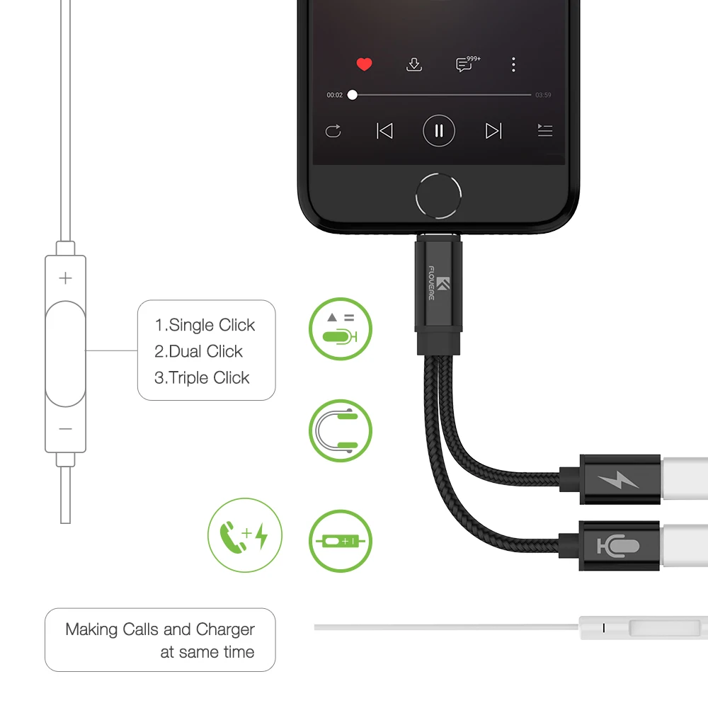 Feature 2:2 in 1 Charging and Phone Call Jack Aux Adapter Cable