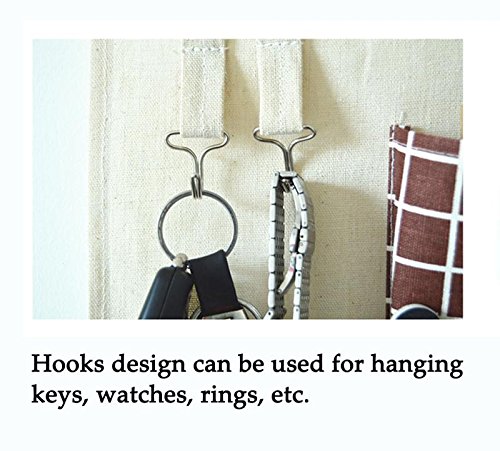 - ✓ Suit to be hung beside your desk/bed, in the kitchen, behind the door. Help you organize things all together in tidy way, such as phones, cosmetics, remotes, glasses, jewelry, stationary, pens, bills, keys, scissors, small notebook, etc. Creative household items to creat quality life!