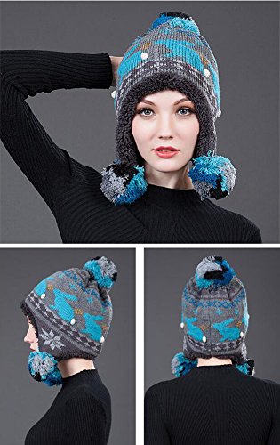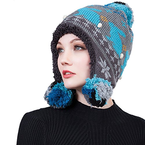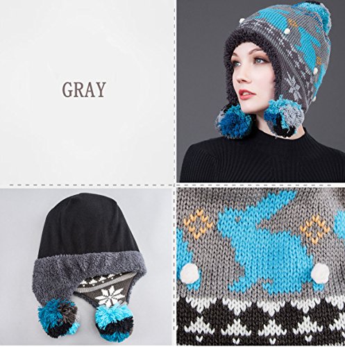 (Roffatide)/Accessories/Hats/DIRECT FROM USA/Roffatide Women Fluffy Pompon Knitting Hat With Ear Flaps Beanie Aviator Bonnet Bomber Cap Flee...
