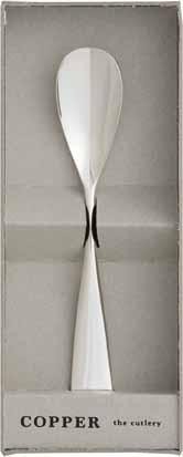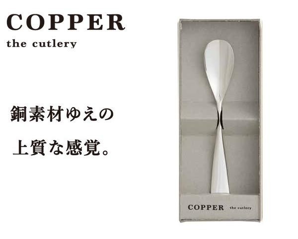 | 「COPPER the cutlery」は熱伝導率が高くぬくもりをダイレクトに伝える銅素材にこだわった正統派のアイスクリームスプーンとバターナイフのブランド。熱伝導率の高い銅素材のカトラリーは他金属のものに比べて手の温もりをダイレクトに伝え、固く凍った氷材さえやさしく溶けてゆく。銅素材のみにこだわった、シンプルで上質なCOPPER the cutleryは、悠久に続く優雅な時間を演出します。 |