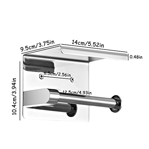 Toilet Paper Holder For Bathroom Hardware,Stainless Steel Tissue Holder With Mobile Phone Storage Shelf,Easy To Install Wall Mount Wipe Container For Toilet Hold Key, Ashtray,Watch,Glasses