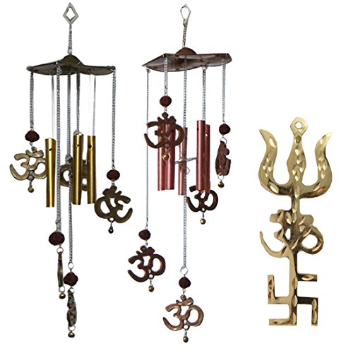 This combo includes - (1) Trishakti Yantra Hanging - 3.5 x 9.5 cm (2) Two Feng Shui Om Rudraksh Wind Chime - 9 x 37 cm