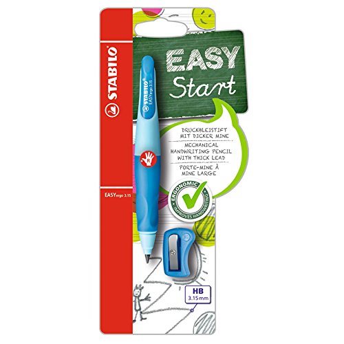 STABILO EASYergo 3,15 with 1 thick &HB Lead Sharpener-Ergonomic Pencil for Right-Handed Rollerball Pen Light Blue