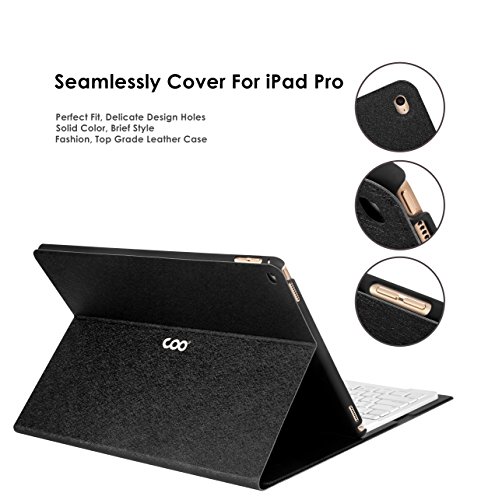 [Description] Exclusive design for Apple iPad Pro tablet_ High quality PU leather cover and soft_ microfiber-lined interior provide full protection for your tablet. Built-in magnetic strip boasts durable magnetic force_ snaps on easily when closed. Stylish_ colorful_ wireless Bluetooth keyboard and housing bracket perfect combination Precise cut-off provides full access to all ports and features_Charging time 2.5 - 3 hours; Estimated uninterrupted working time 40 hour Real laptop-style keyboard_ giving you better typing experience than silicone keyboard as other cases_ helping you to type faster and more comfortable with less error. This product is sold exclusively by COO. Only buy from COO to get genuine COO products with manufacturer 12-month warranty and superb customer service.