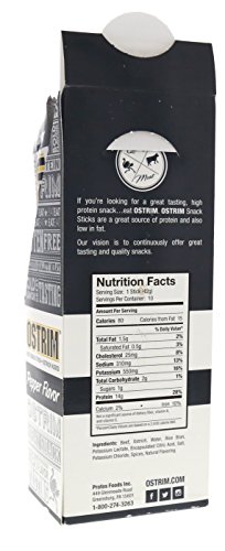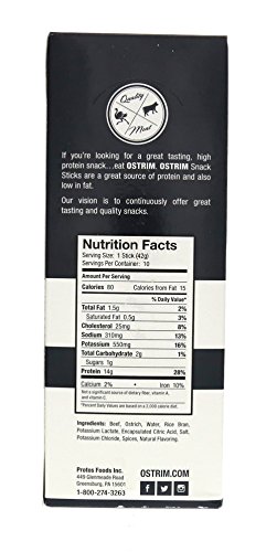 Product DescriptionOstrim beef ostrich snack has the leanest meat that is high in protein and has 0 grams fat.0