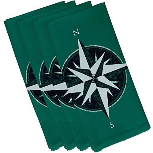 E by design Compass, Geometric Print Napkin, 19 x 19", Green