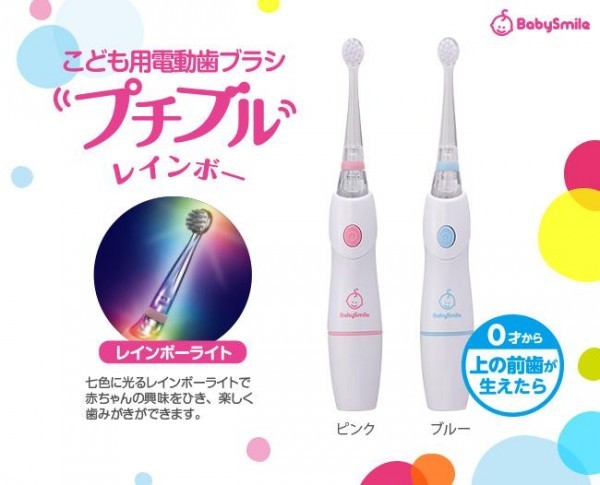0歳から始める電動歯ブラシ♪レインボーに光るLEDライトが搭載されており、楽しく歯みがきを習慣づけることができます。洗面所でも安心の生活防水対応! |
