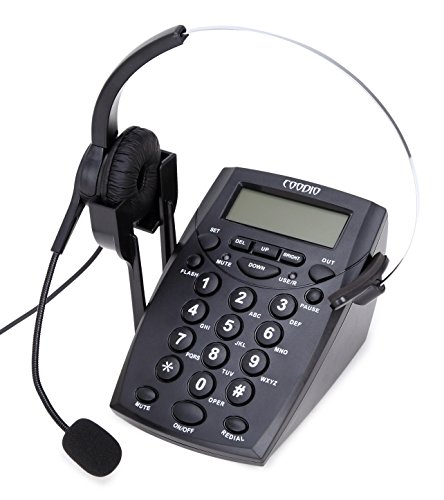 Dialpad with Headset, Coodio Corded Phone [Call Center] Telephone with Headset and Recording Cable and Tone Dial Key Pad / Redial - C888