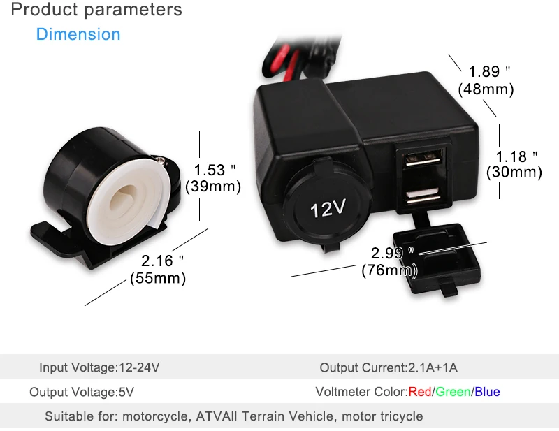 motorcycle dual usb charger:motorcycle usb charger voltmeter for iphone 7 plus