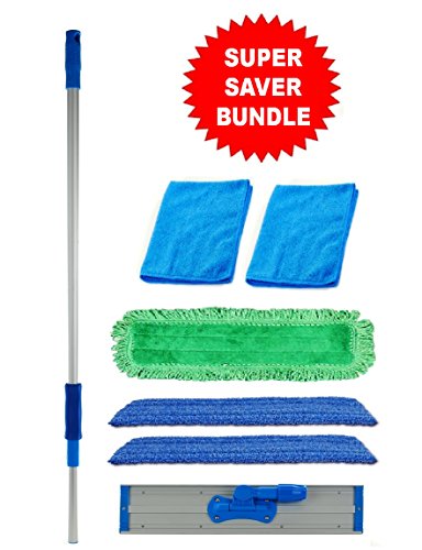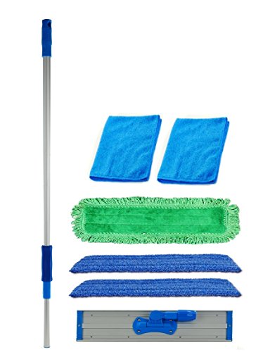 Studio : Real Clean Publisher : Real Clean Product Description This Real Clean Industrial and Commercial Microfiber Mop is made of lightweight aluminum. The mop head size is 4.75" wide by 18" long. We include (2) 18" Blue Premium Microfiber Wet Mop Pad, (1) 18" Green Premium Fringe Microfiber Dust Mop Pad, (1) 70" Durable and Lightweight Telescopic Aluminum Handle, (1) Heavy Duty Aluminum Mop Frame and 2 Bonus Microfiber Super Towels(colors may vary). The Premium Wet Mop Pads are our highest quality wet pad and feature plush loops of microfiber yarn that wraps all the way around to the back of the mop pad allowing you to clean all the way to the base boards. They're also made with a thick foam core that allows the pad to absorb more liquid which means you can cover more area with each pad. Dust Mop Pad features microfiber fringe yarn that's great at attracting and holding onto larger debris like pet hair and food crumbs while the microfiber in the interior of the mop will collect finer dust particles. The telescoping mop pole extends to a full 70". Utilized with Microfiber pads they form the latest in mopping technology. This allows for a more efficient and productive system. These Mops are now being utilized in schools, hospitals, restaurants, and senior living homes around the world. In the health care industry Microfiber mops and pads are used in patient rooms to reduce the risk of cross contamination from room to room. Each Microfiber Mop pad contains hundreds of thousands of porous microscopic fibers that remove bacteria from floors and other room surfaces. Microfiber Mop pads are attached to a Velcro strip on the bottom of the mop head making for a simple and safe system. The amount of dust, bacteria and germs you remove will be drastic and amazing. Just throw them in the wash when you are done and you are ready for use after use! This will change the way you clean your surroundings. 0