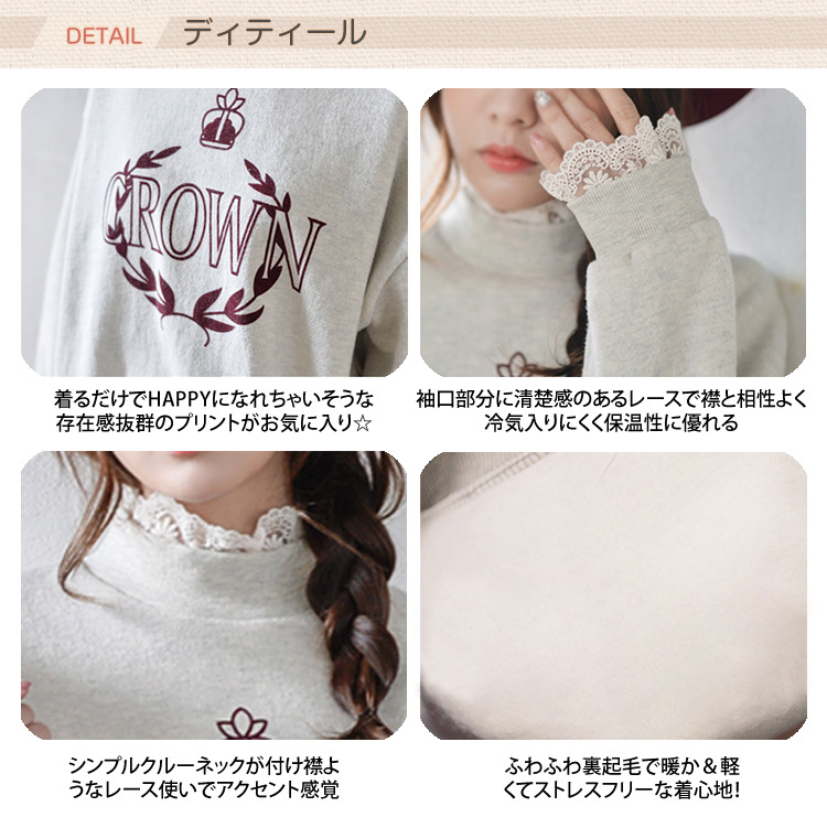 | ふわふわ裏起毛で暖か×軽くてストレスFreeな着心地!選べるロゴスウェットが登場☆襟元、袖口に清楚感のあるレース切り替えがふんわりしてガーリ度抜群!クセになっちゃう、ふんわりソフトな肌触りであったか!柔らかタッチ裏起毛で肌触りバツグン◎どんなコーデもお洒落にカジュアルダウンできる万能Itemは、ルーズになりすぎないのが嬉しい?しっかりしたスウェット地ながら裏地は抜けにくいので、裏起毛がインナーにびっしり!なんて心配もなし☆インナーにシャツを重ねても今年らしくて◎デイリーに大活躍のロゴトップスは、何枚あっても使えるのでオススメ! | |