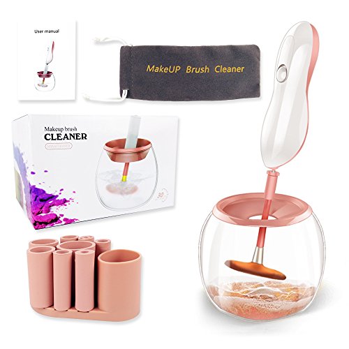 Automatic Makeup Brush Cleaner and Dryer Machine, Deeply Instantly Wash & Dry, with Multiple Collars Fits Most Sizes of Brushes, Easy Washing Tools Kit (Pink)