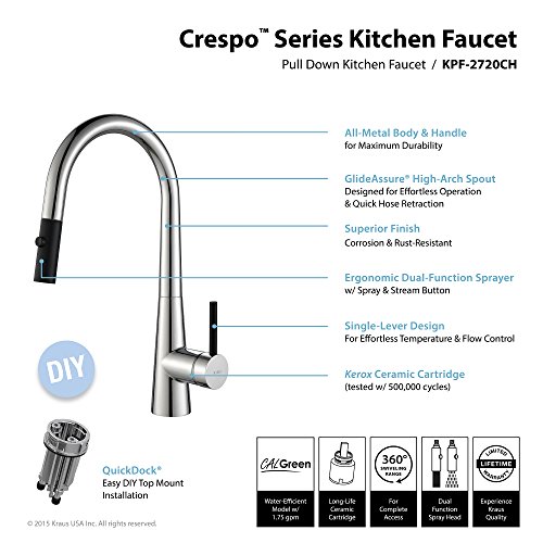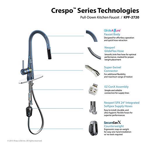 Kraus KPF-2720CH Modern Crespo Single Lever Pull Down Kitchen Faucet, Chrome