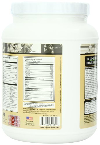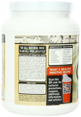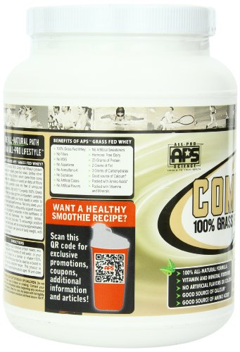 ReleaseDate : 2010-11-22 Studio : All Pro Science Publisher : All Pro Science Binding : Health and Beauty Product Description The whey protein comes from naturally grass-fed cows which are never treated with antibiotics, bovine growth hormones or raised on diets of fillers and corn. Grass-fed cows are free of unnatural contaminants plus you also get the all-important complex array of amino acids your body needs in order to optimize performance.100% all-natural formula. 0