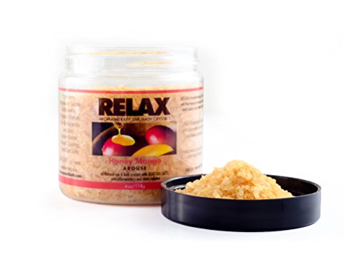 -. Feature : Honey Mango - 4 Oz Bottle - All Natural, Aromatherapy Bath Crystals - Stimulate Your Senses and Relax Your Spirit With Honey Mango / Powerful Aromatherapy with Natural Coloring - Enhances Relaxation - Vitamin Enfused / Remedy for Aches & Pains - Reduce Tension & Stress - Enhance Self-Healing & Detoxify / Skin Softening Moisturizers - For Spas, Hot Tubs, Jacuzzi, & Whirlpool Bath - Spa Safe / Does Not Affect the pH or Water Chemistry - Safe for Children & Pets - Will Not Damage, Stain or Affect Equipment or Surface