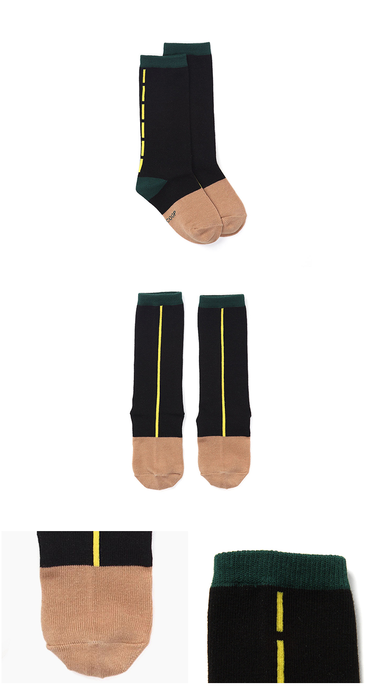 옐로우 컬러의 스티치 배색 포인트로 유니크한 블랙컬러 니삭스입니다.