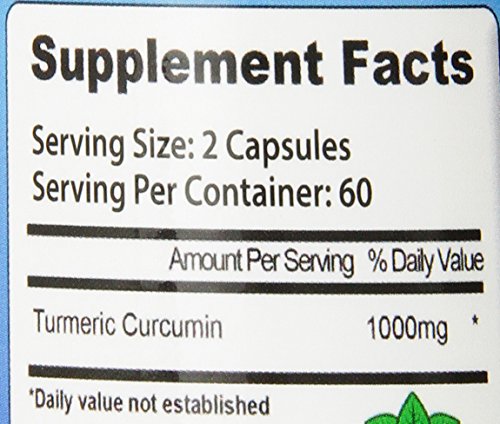 -. Feature : The highest quality in turmeric curcumin supplements, 1000mg in two daily capsules, 500mg per capsule / Formulated by biochemists for maximum potency / 100% satisfaction guaranteed; You will love our turmeric / Made exclusively in the USA, for informed customers that want the very best 120 capsules with no fillers, no binders, and no artificial ingredients / Highest quality available on the market; 100% pure, and all natural