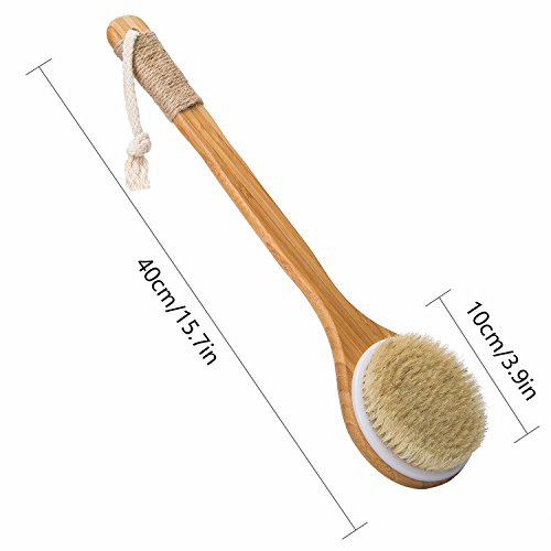 ROPE LOOP &LONG HANDLE:Features non-slip performance with wrapped hemp rope around, provide better grip.16' handle can reach those hard-to-reach areas.Brush also has rope loop for hanging. DRY/ WET BRUSHING YOUR SKIN-Use dry brush to boost circulation and promote skin health and glows, also can moisten it to be used as body brush for exfoliating your skin and removing the dirt and dead skin.