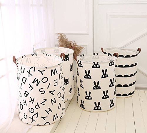 Simple black and white style with 2 leather handles on 2 sides, a beautful and fashion foldable bag to put in the room£¬ large size to put clothes, toys, magazines and any other things in it