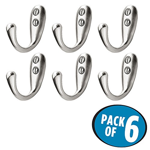 InterDesign Wall Mount Hook – Hanging Storage for Jackets, Coats, Hats and Scarves, Chrome, Pack of 6