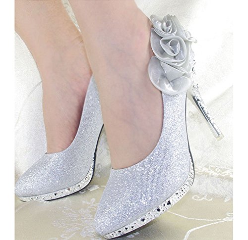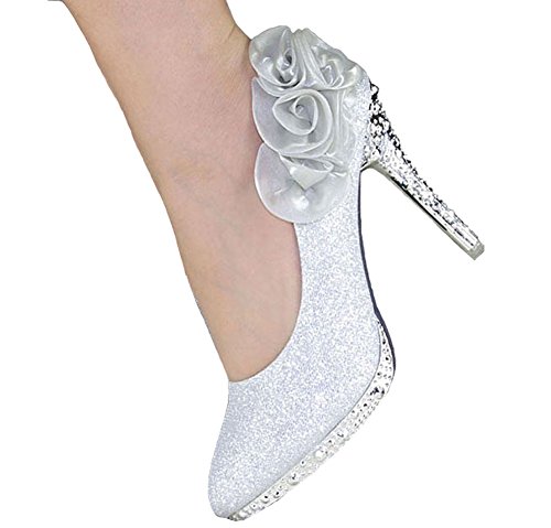 -. Title : Getmorebeauty Women's Silver Rose Flower Crystal Glitter Wedding Shoes