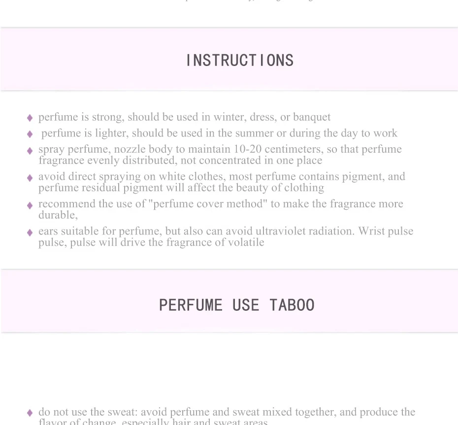 Ingredient:Rose Lemon Peony Vanilla Jasmine Perfume Women