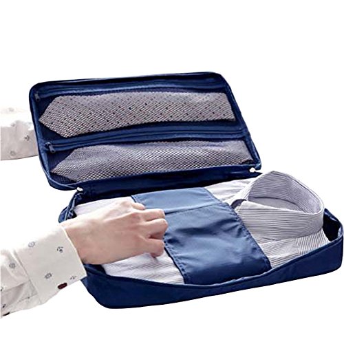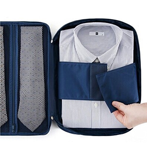 Product Description Keep your shirts and ties wrinkle free when traveling with this suit and tie travel organizer. Designed for travel, this lightweight and compact sized organizer holds up to 3 folded shirts and 4 ties in the zippered mesh pocket. The pockets are also great for small electronic accessories. The top handle makes carrying the organizer around easy. The organizer is also great to use at home.