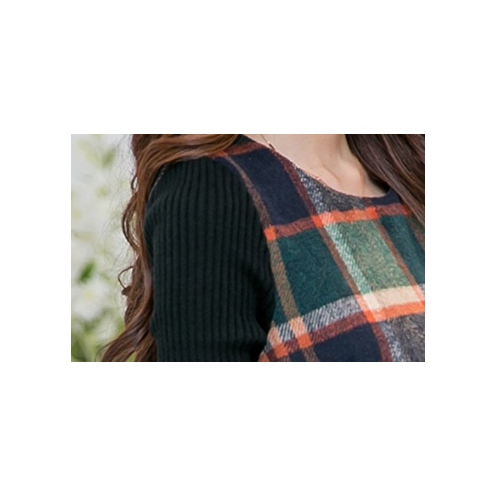 멀티 체크 무늬의 레이어드풍 원피스입니다.리브 컷소우에 베어(베이스 업) 원피를 중잔 레이어드는 상냥한 분위기입니다.백 패스너 부착에,주름가 되어 어려운 소재입니다.