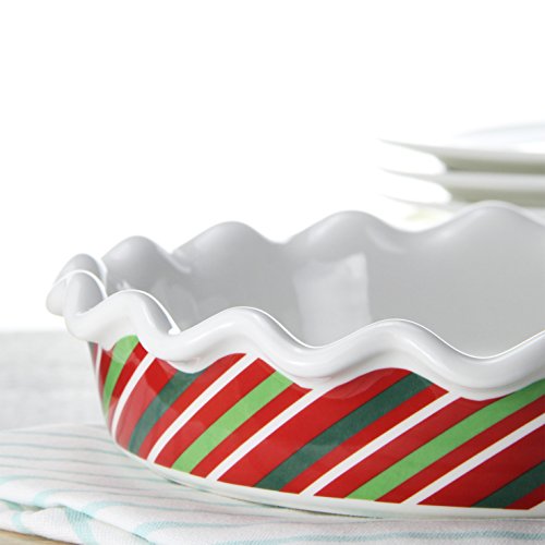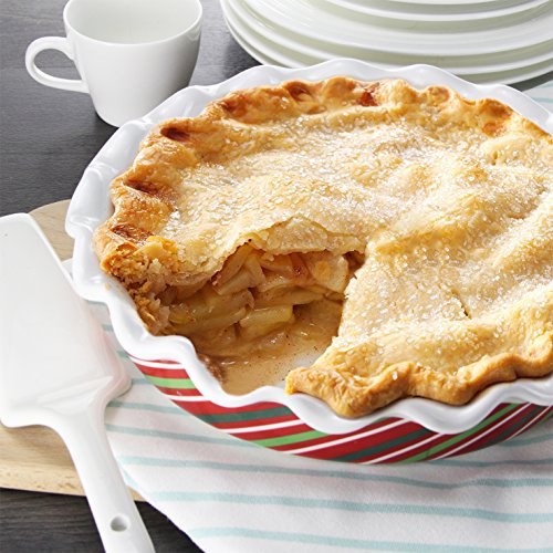 Size:10.5 X10.5 X 2 inch COLOR: Christmas Red and Classic White What's in the Box: 1 Christmas Pie Dish Lifver After-sales Service Card WHY Lifver PIE DISH IS THE BEST CHOICE?