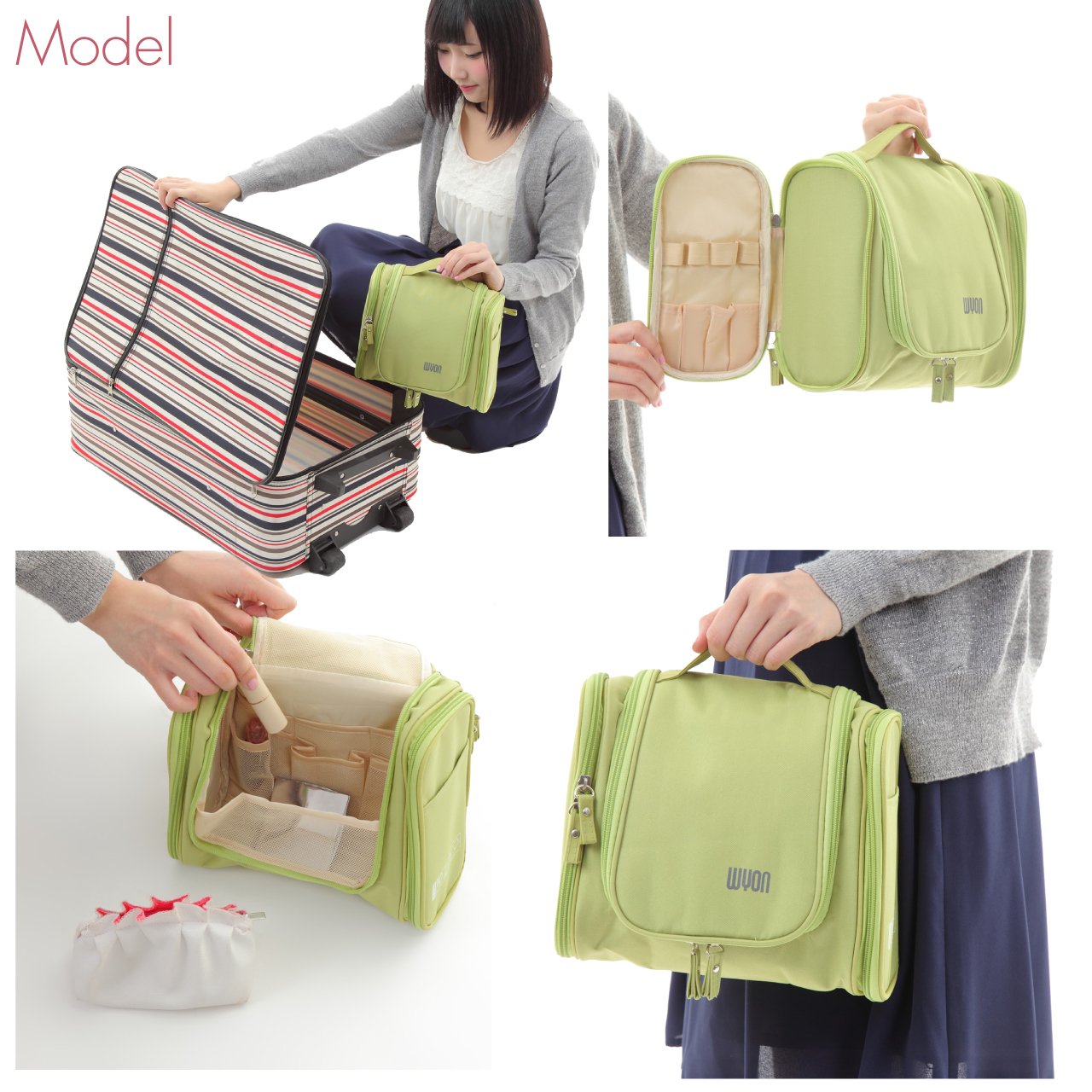 Inside there are mesh pockets, fine toiletries, toothbrushes, make-up bottles, towels etc. can be stored separately for use.