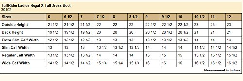 Studio : JPC Equestrian Inc Publisher : JPC Equestrian Inc Binding : Apparel Product Description Favored by taller riders, the TuffRider Regal Extra Tall Dress Ladies Boot goes the distance when every inch counts. Built with ultra-soft leather, this boot features grippy leather on the inside calves. Full-length zippers enhance your ability to easily put on and remove this boot, while elastic gussets customize the fit. The square toe looks prim and proper in the show ring. Both ankle and knee are fitted with snap closures. Choose from available width options! Select from available sizes. Created from leather. An extra tall black boot. Features an elegant square toe for a traditional look. Equipped with full length zipper, elastic gusset, and snap closures. Provides a comfortable fit. 0
