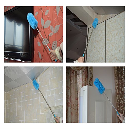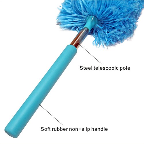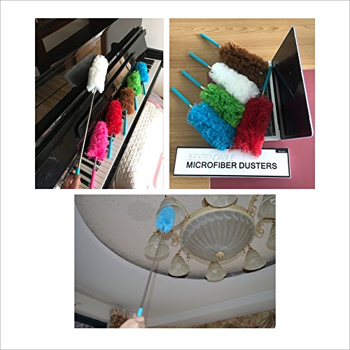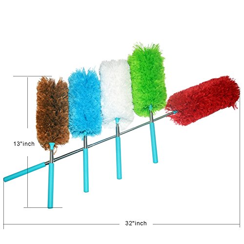Fluffy Microfiber Duster - With 32" Inch Telescoping Pole, Retractable Long-Reach Washable , Dusting BrushReusable Microfiber, Bendable, Non slip Handle, Microfiber Hand Duster(Pack of 5)