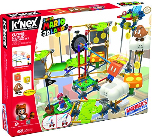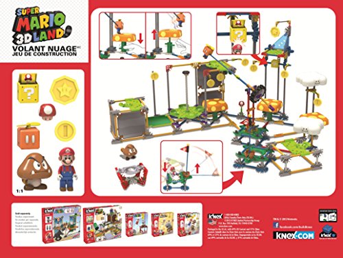Featuring K'NEX's all new jump disk and launcher that allow Mario to run and jump, like he does in the game. Build Mario and use the jump launcher to enter the course. Can you find the hidden room with a coin in the back? Look out for the Tailed Goomba. Jump over him to grab the Star Medal. Use the spinning elevator platform to reach the top, then grab the Propeller Box to begin your flight. Attach Propeller Mario to the special rod arm, and fly him over the clouds. Bounce off of the mushroom platform to hit the mystery box - what did you get? Pop-up the goal flag and you've completed the course.
