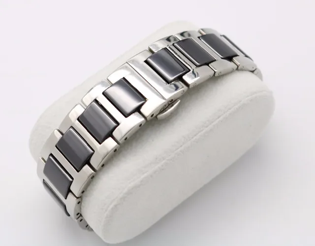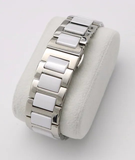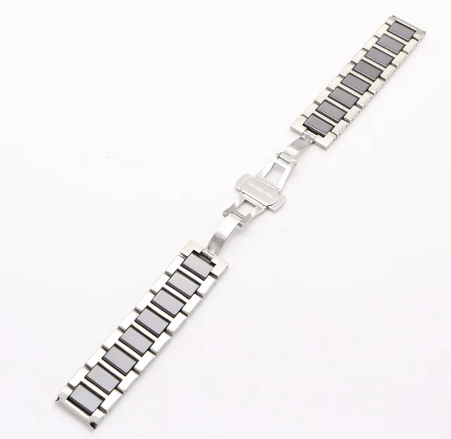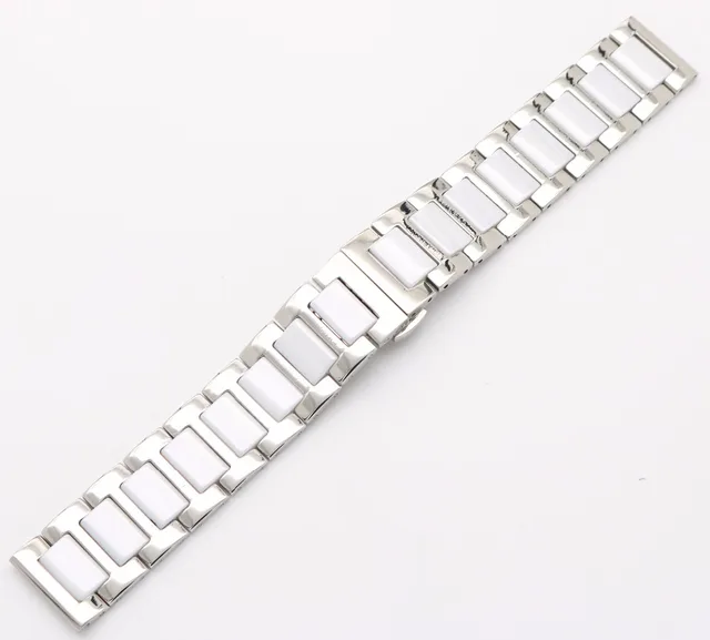 | [해외]16 18 20 미리메터 남성 레이디 실버 솔리드 스틸 시계 밴드 스트랩 벨트 팔찌 블랙 화이트 세라믹 중간 링크 더블 푸시 걸쇠 |